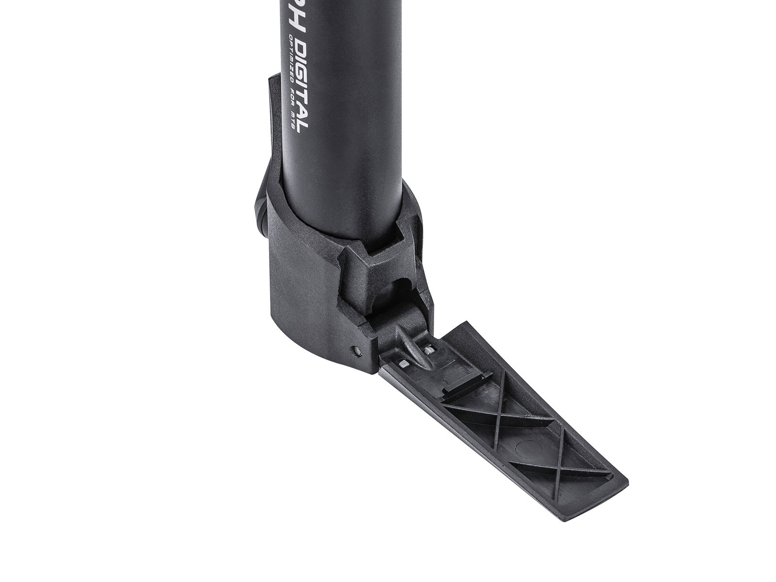 позволяющим легко считывать давление в шинах. Максимальные показатели до 160 фунтов на квадратный дюйм или до 11 бар. Откидная подножка и гибкий шланг обеспечивают отличную стабильность для более эффективной прокачки.